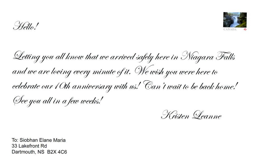 Here is a postcard I made using Adobe InDesign. The photo was taken from the top floor of a Niagara Falls hotel.